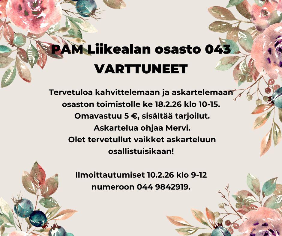 - Tulevista tapahtumista saat tietoa näiltä sivuilta, osaston toimistolta sekä seuraamalla PAM.fi lehteä.