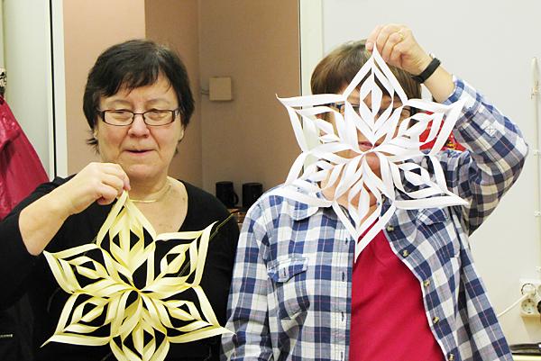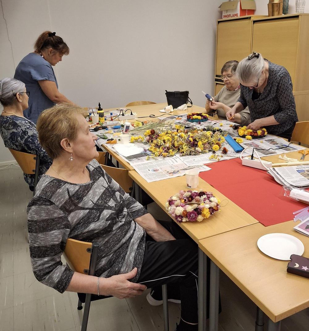 Varttuneet askartelemassa Mervin ohjauksessa 17.4.2025